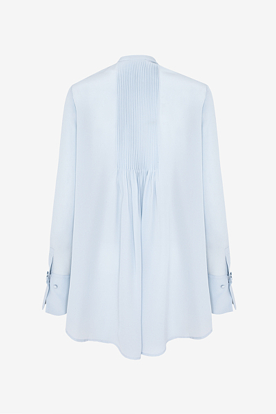Diese klassisch geschnittene Bluse überzeugt durch die mit kleinen Schleifen besetzte Knopfleiste, die in einem zarten Stehkragen endet. Die schmalen Ärmel münden in eine leicht ausgestellte Manschette, die auch mit einem Schleifchen aufwarten kann. Die feinen Biesen auf der Rückseite sorgen für eine frische Leichtigkeit und femininen Charme.