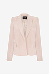 Ein wunderschöner kurzer Blazer, der offen getragen wird und daher keinen Verschluss besitzt. Das tiefsitzende Revers sorgt durch seinen schimmernden Glanz für eine ganz besondere Optik und einen tollen Effekt. Ein absolut zeitloses sowie modernes Design, welches in keiner Garderobe fehlen darf.
