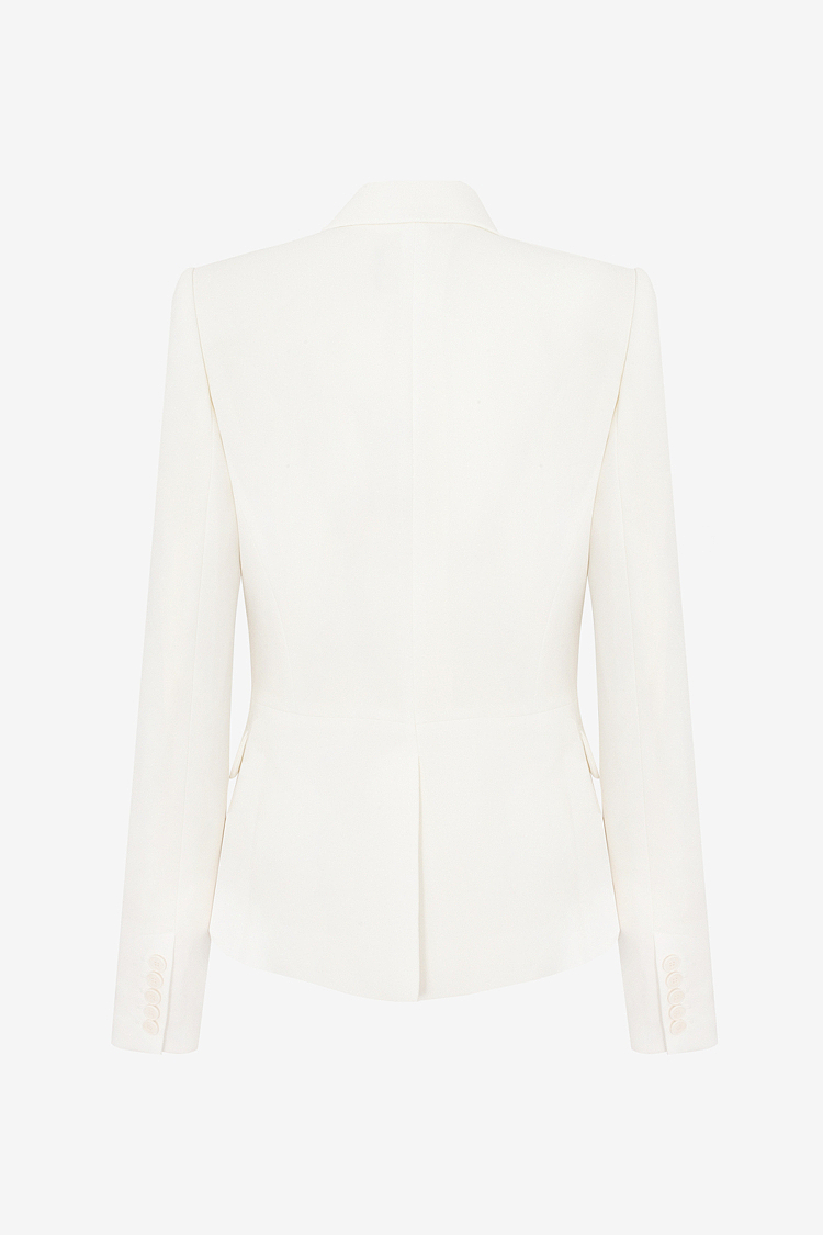 Unser erfolgreicher Doppelreiher mit echten Hornknöpfen ist verkürzt und tailliert geschnitten, sodass er jedem Figurtyp schmeichelt.