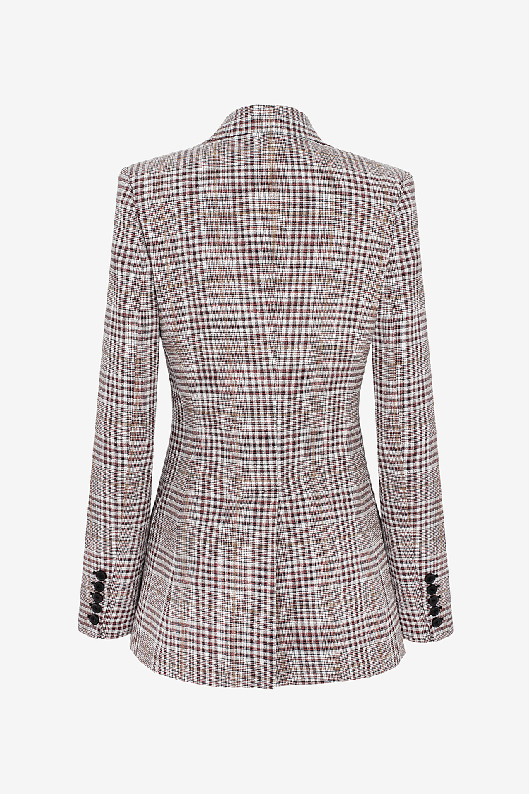 Die Fasermischung aus Wolle, Polyester und Seide hat einen sehr wertigen Glanz und einen leichten Stand. Der feine und luxuriöse Griff dieser Ware macht den Blazer zu einem eleganten und zeitlos schönen Weggefährten.