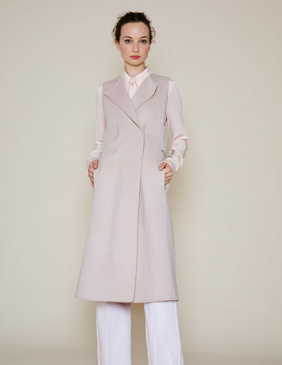 Diese feine Weste ist absolut edel. Das kragenlose und minimalistische Design wird durch den langen Schlitz unterstrichen. Die dezenten Nahttaschen runden diese reduzierte, ärmellose Variante stilsicher ab.