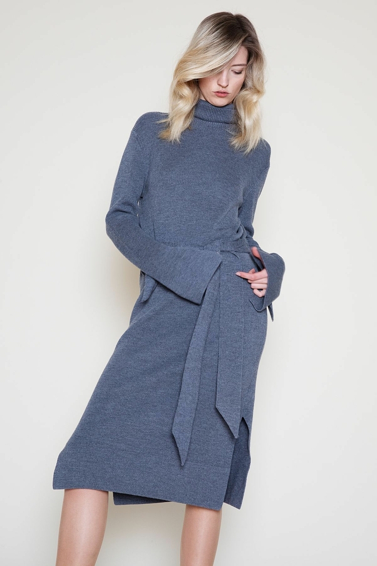 Dieses wunderschöne Kleid im Patentstrick besticht durch seinen minimalistischen Look. Das gerade geschnittene, schwer gestrickte Kleid geht über die Knie hinaus und ist seitlich geschlitzt. Bezaubernde, feminine Details finden sich an den Ärmeln, an denen ein kleines Schleifchen gebunden werden kann. Kombinieren Sie es entweder mit dem beiliegenden Gürtel oder setzten Sie mit einem breiten Ledergürtel ein Statement.