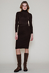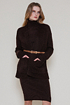 "Ein wunderschönes, körperbetontes Strickkleid. Der kunstvolle Harlekinstrick am Oberteil und der elegant zurückhaltende Rock schaffen eine schöne Dynamik.