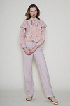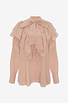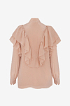 "A gorgeous and with flounces crested silk blouse with a slightly Spanish touch. The lavish flounces and the classical pussy bow collar make the enchanting look.