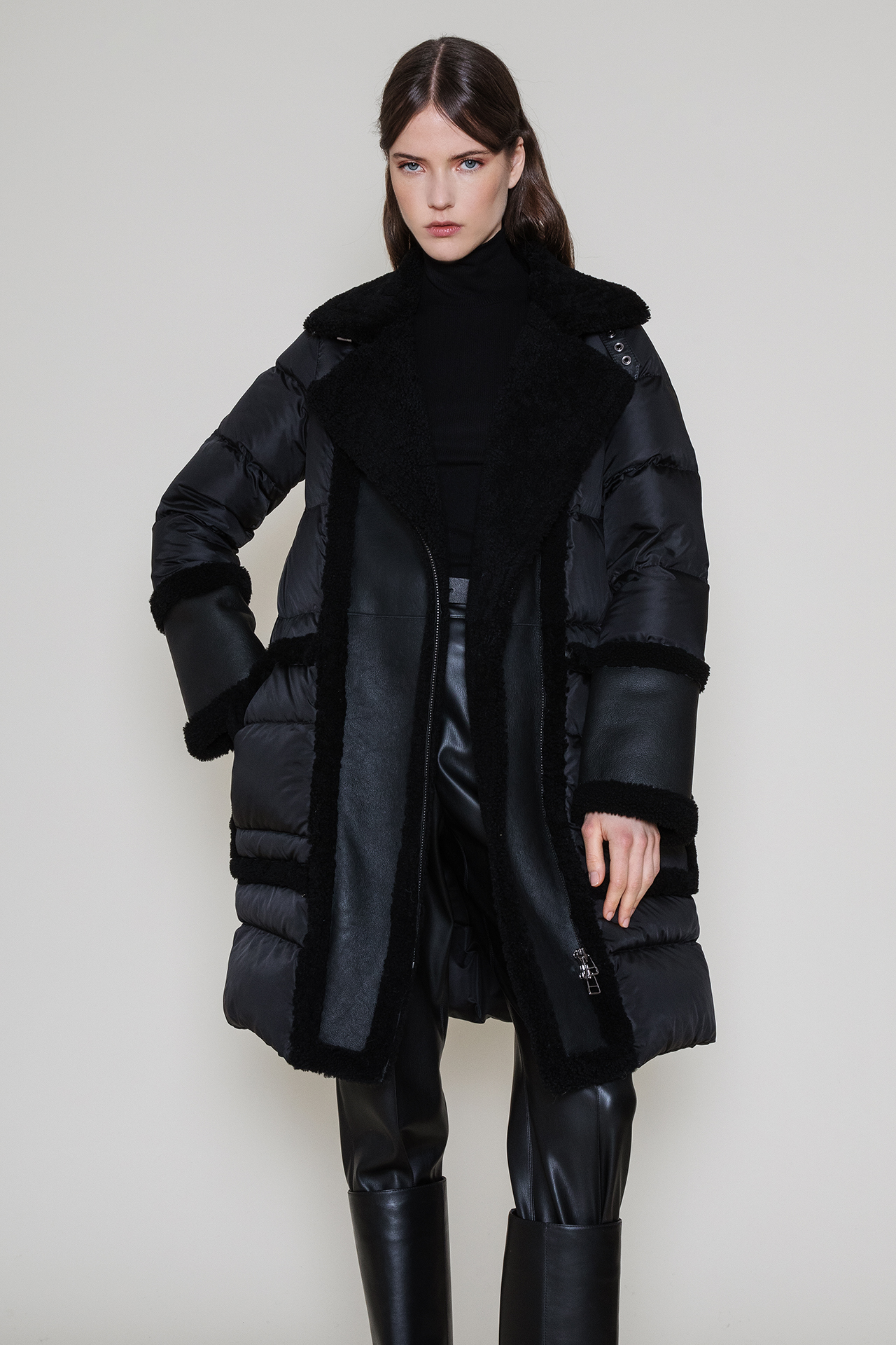 The mixed materials of technical fabric with downs and lambskin are an exclusive combination, which is perfect for cold temperatures and cloudy days.