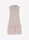 "This delicate dress creates a youthful lightness and kittenish easiness. The high closed neckline, the tender A-line silhouette and the quiteful ruffles at the skirt make a fresh and feminine look. Also like the booth pockets at the side seam which make the look young and sportive.