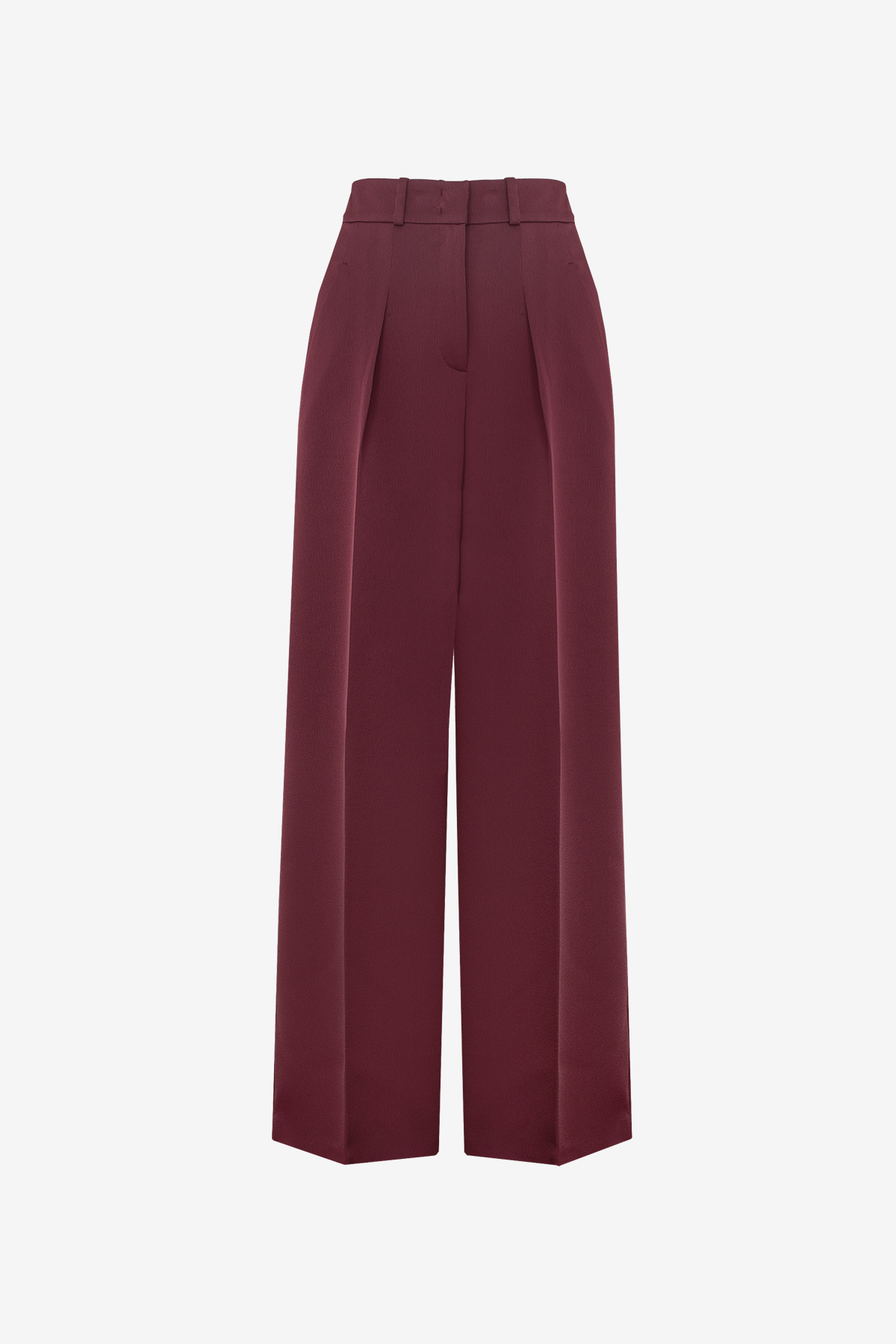 High-cut and perfectly proportioned – these trousers embody feminine tailoring at its best. The long leg with ironed creases creates an elongated and elegant look. Our popular crêpe envers satin gives it a luxurious radiance and makes it suitable for everyday wear.
