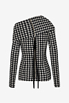 This sculpted long-sleeve top blends classic pattern heritage with contemporary construction. Crafted from high-quality pied-de-poule fabric, it features a precisely contoured silhouette and a striking draped neckline. The structured material enhances the defined shape, while the refined design lends a modern yet timeless elegance to any look.