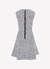 This elegant mini dress convinces with its light A-line, the high round neckline and the flared skirt. The delicate satin ribbon on the back zip is a fine and feminine detail.