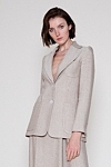 This single-row blazer is characterized by its broad lapel. Three rounded patch pockets make this fitted jacket a little bit more sporty and give the slightly stretched body more structure.