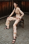 These perfect wide-legged pants are characterized by a clean design that concentrates on a cool shape. Long legs and ironed creases stretch the legs optically. Cut from soft jacquard fabric with a copper shimmer that will elevate your outfits.