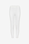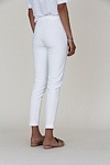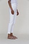 High waist strech pant with a slightly cropped and slim-cut straight leg. The front seam stretches the legs optically.