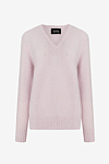 This low V-neck jumper is a true classic. Its simple, slightly boxy shape is finished with long ribs that give it a cool touch. The delightfully light weight and fluffy yarn was made from cashmere and silk. Without doubt, you won’t find a more comfortable piece for cozy hours.