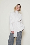 This cozy cardigan is an all-time favourite piece. The timeless silhouette, the pleasant and belted design is lovely to wear. Also the mixed knitting techniques create the final and fashionable look.