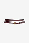 This slim belt, crafted from supple Nappa leather, stands out with its soft texture and refined wrap-around design. The double strap can be styled individually around the waist, creating a sophisticated silhouette. A polished gold-tone pin buckle adds an elegant accent and completes the classic look. Whether worn over a blouse, dress, or coat, this accessory lends structure and elegance to any outfit.